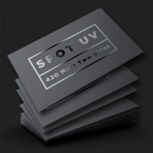 Spot UV cards feature a glossy finish applied to specific areas of the design, such as logos, text, or patterns, to create a contrast against the matte or uncoated surface. This effect gives the card a modern, sleek, and professional appearance.